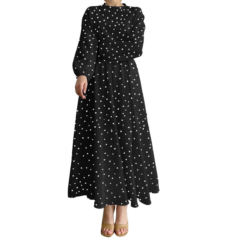 (25% Off Any Two Items)New Casual Loose Waist Long Sleeve Round Neck Heart Printed Dresses