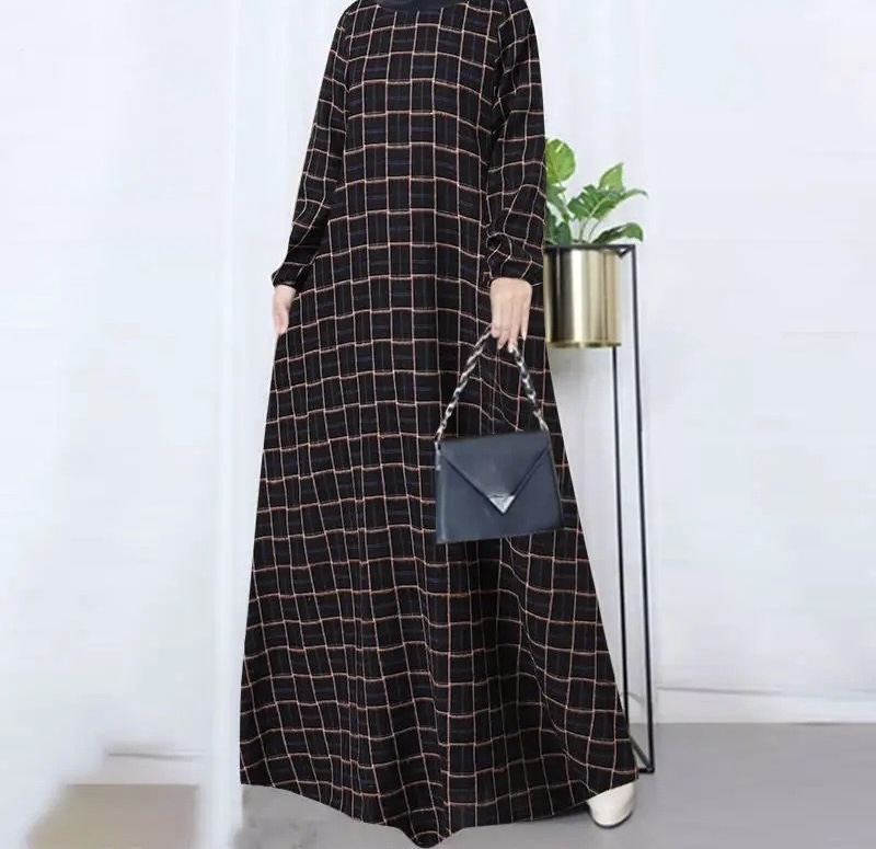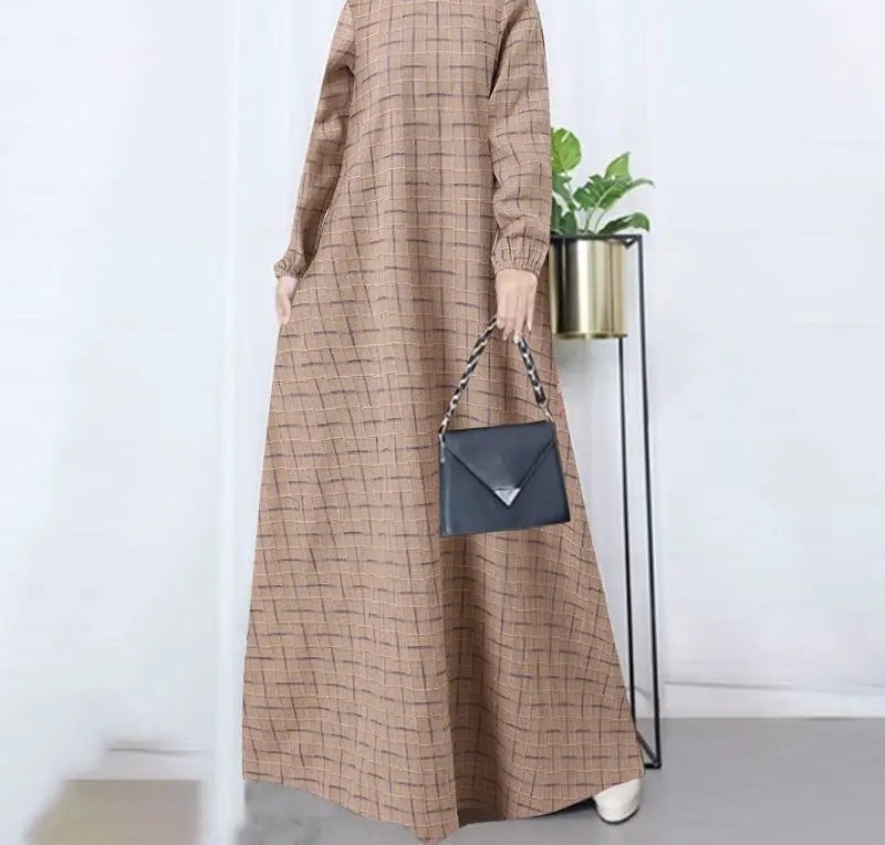 (25% Off Any Two Items)New casual women's cotton and linen retro long-sleeved plaid round-neck dresses