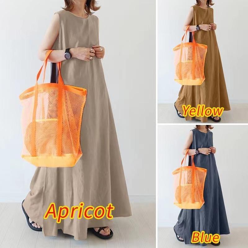 (25% Off Any Two Items)New cotton linen solid color casual simple loose sleeveless long plus size dresses