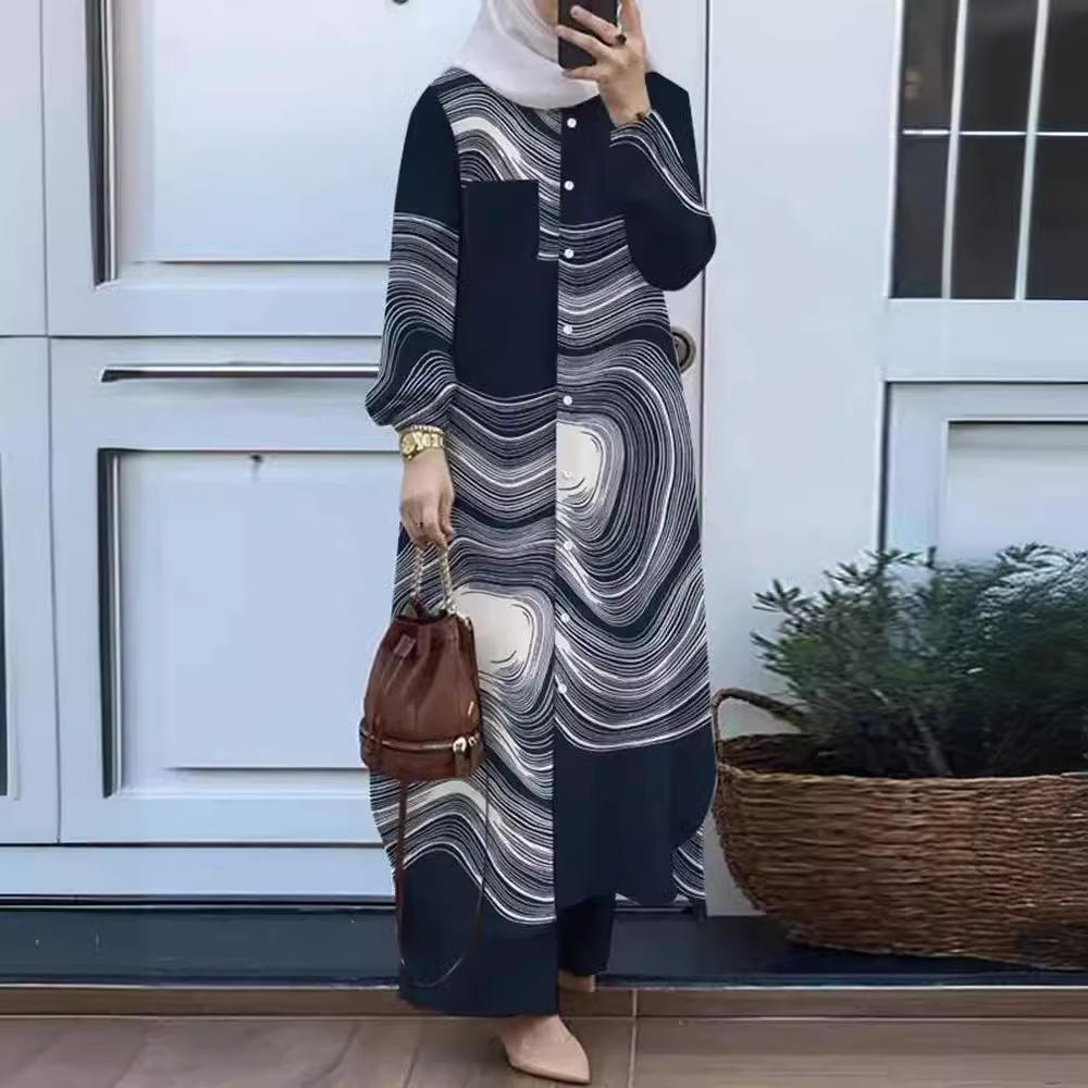 (25% Off Any Two Items)Temperament Collage Cardigan Long Sleeve Lapel Women's Shirt Long Pants Set