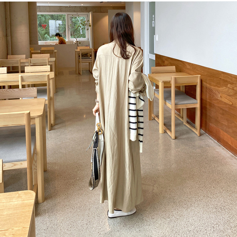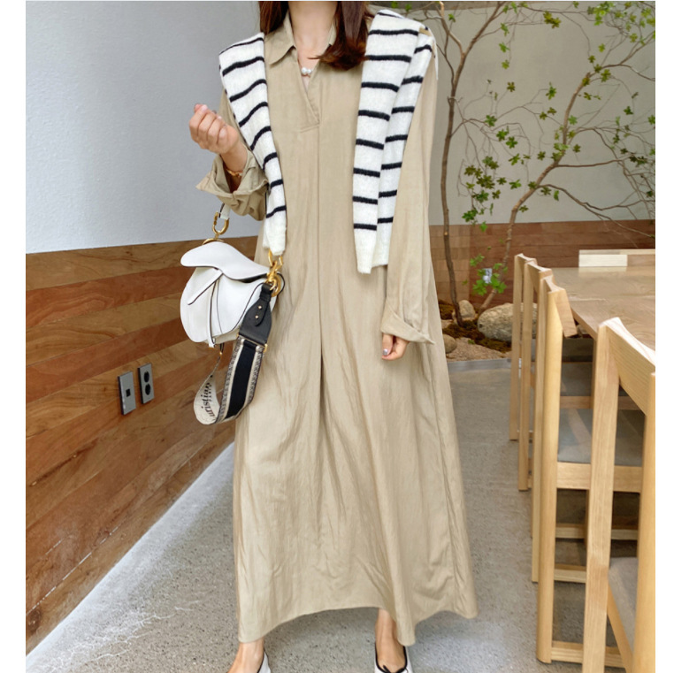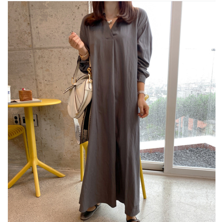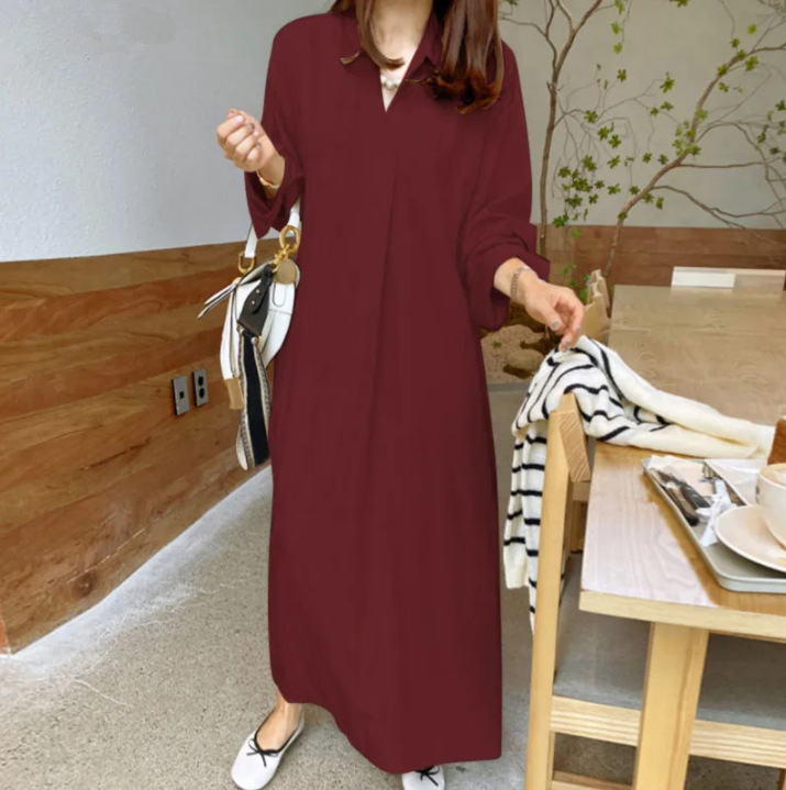 (25% off two pieces)2024 new solid color cotton linen long-sleeved temperament plus size dresses