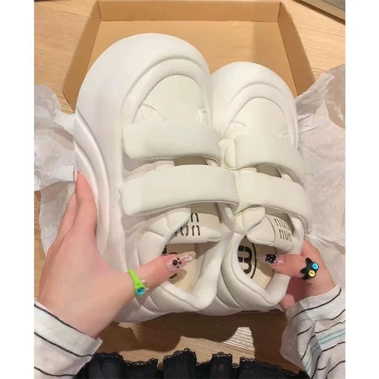 Ugly cute big head shoes velcro thick bottom small white shoes women